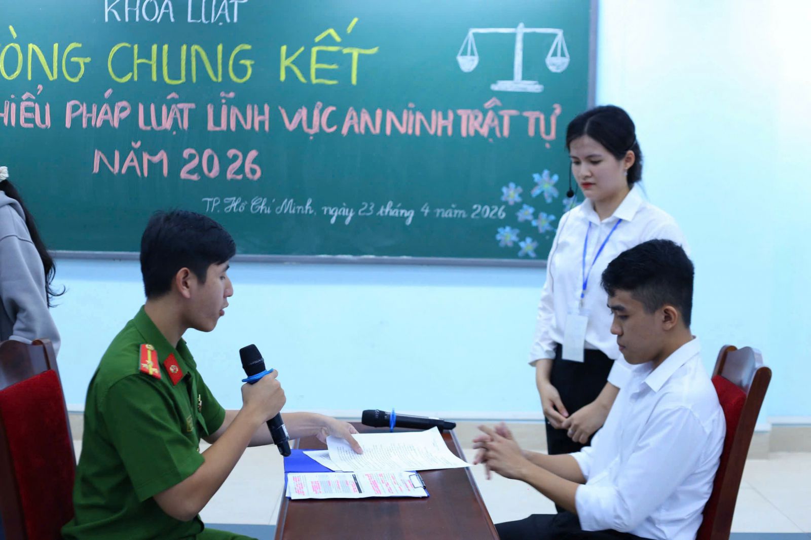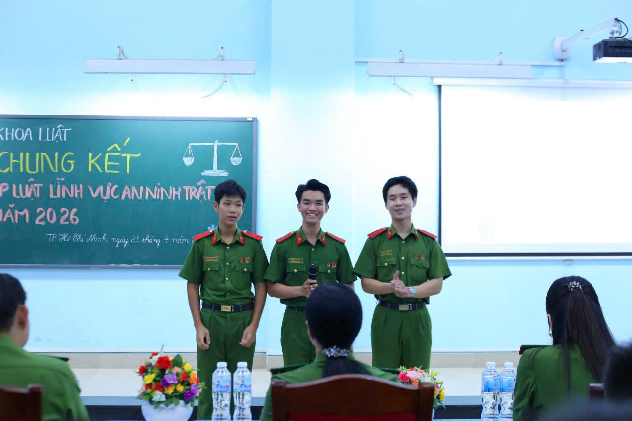 Sau thời gian tranh tài sôi nổi, vòng Chung kết Cuộc thi “Tìm hiểu pháp luật lĩnh vực an ninh trật tự năm 2026” đã diễn ra thành công tốt đẹp. Cuộc thi do Khoa Luật chủ trì, phối hợp với Câu lạc bộ Pháp luật Nhà trường tổ chức.
