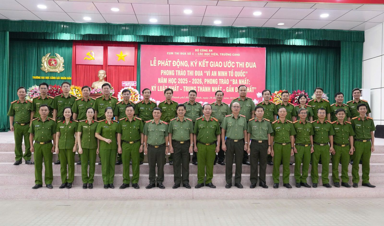 Chiều 28/11/2025, Cụm thi đua số 1 - Bộ Công an (gồm Trường Đại học CSND, Trường Đại học ANND, Học viện ANND, Học viện CSND và Học viện Chính trị CAND) đã tổ chức Lễ phát động, ký kết giao ước thi đua trong phong trào “Vì an ninh Tổ quốc” năm học 2025 - 2026.
