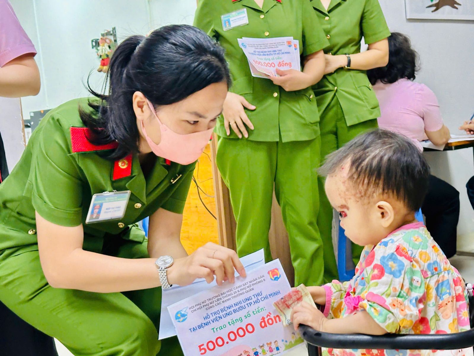 Đến với Bệnh viên Ung bướu Thành phố Hồ Chí Minh, các nữ hội viên Chi hội Phụ nữ Liên thông 29 và Phòng LT&TV Nhà trường đã ân cần thăm hỏi, động viên, trao tặng 42 phần quà, tổng trị giá 21 triệu đồng cho các bệnh nhi ung thư đang điều trị nội trú tại Bệnh viện. Đây không chỉ là sự hỗ trợ về mặt vật chất, mà còn là nguồn động viên to lớn về tinh thần, tiếp thêm sức mạnh để “những thiên thần nhỏ” vững tin, chiến thắng bệnh tật.