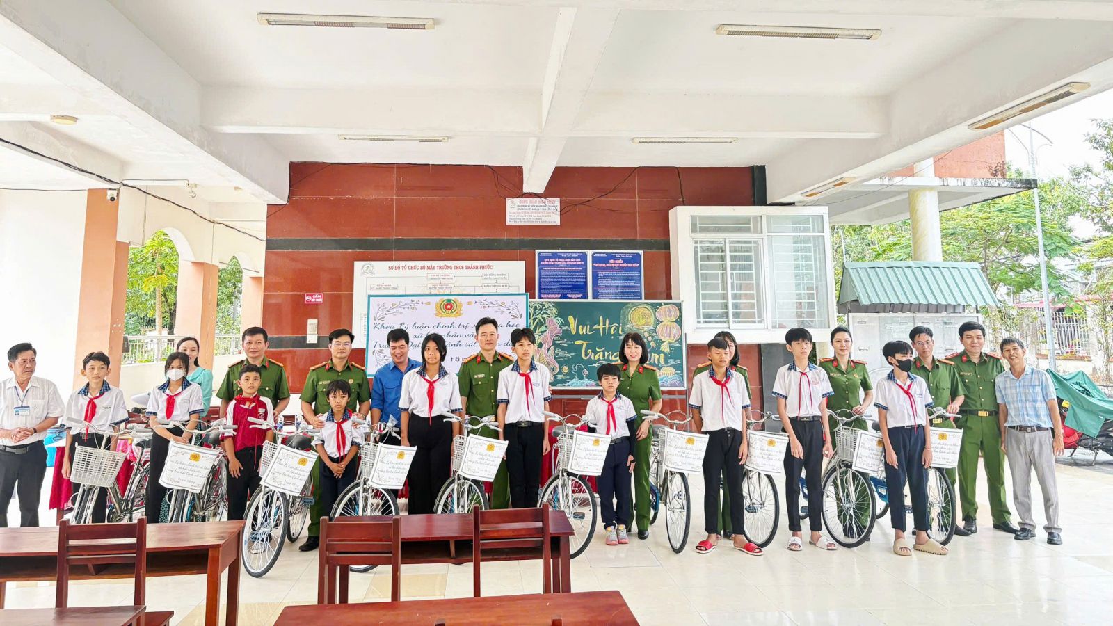 Đoàn trao tặng 10 chiếc xe đạp cho các em học sinh khó khăn học giỏi tại Trường THCS Thành Phước, Phường Bình Minh, tỉnh Vĩnh Long