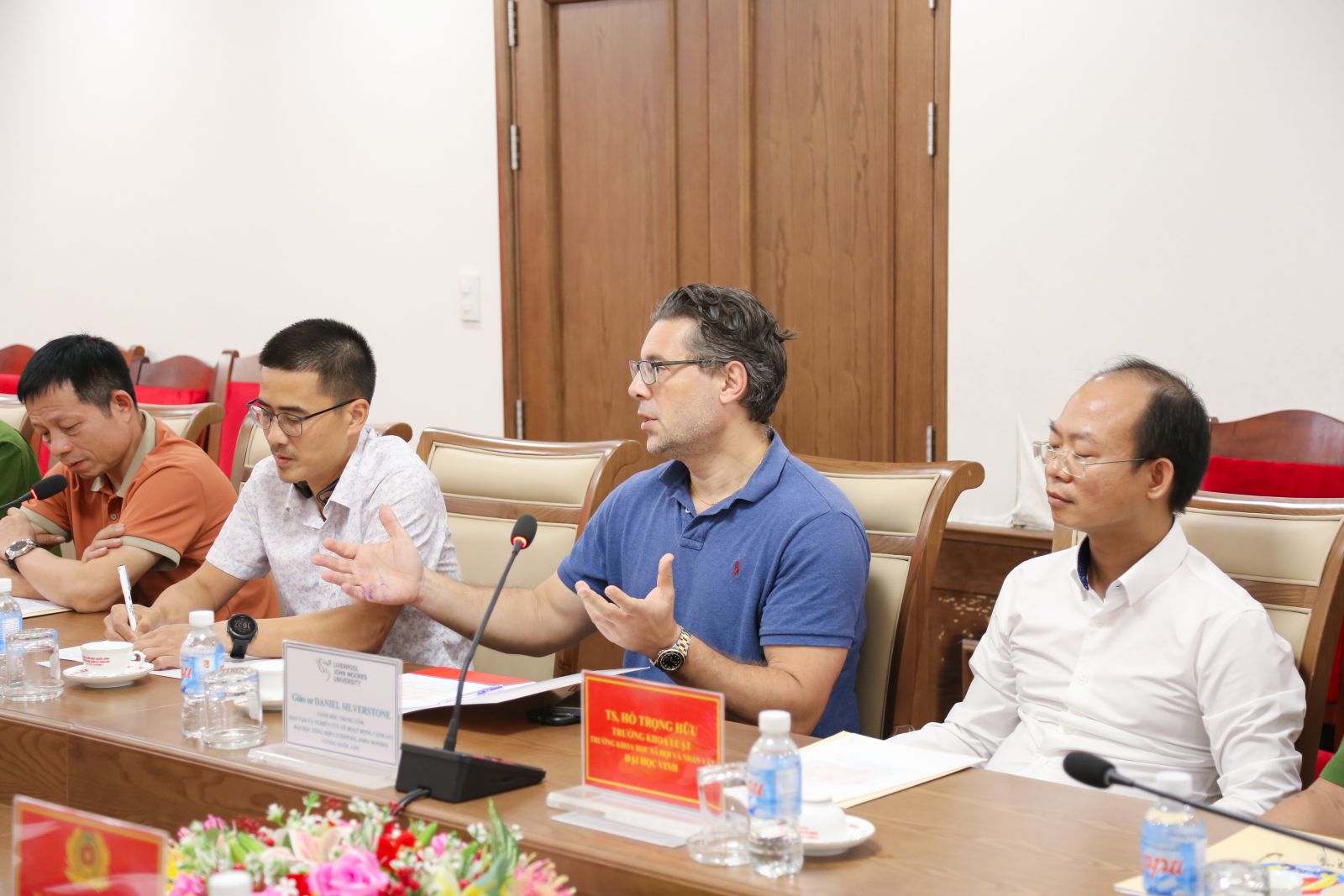 Tại buổi làm việc, Giáo sư Daniel Silverstone đã chia sẻ kinh nghiệm về phòng chống tội phạm có tổ chức, tội phạm liên quan đến người Việt ở Anh và Châu Âu; Tiến sĩ Lương Thanh Hải chia sẻ kinh nghiệm sử dụng AI trong nghiên cứu và hoạt động cảnh sát. Đồng thời, đại biểu dự buổi làm việc cũng đã trao đổi các nội dung liên quan đến ứng dụng công nghệ thông tin và chuyển đổi số trong giáo dục đào tạo, quản lý điều hành nhà trường; đổi mới phương pháp giảng dạy; ứng dụng khoa học công nghệ trong phòng chống tội phạm có tổ chức, tội phạm xuyên quốc gia và tội phạm công nghệ cao…