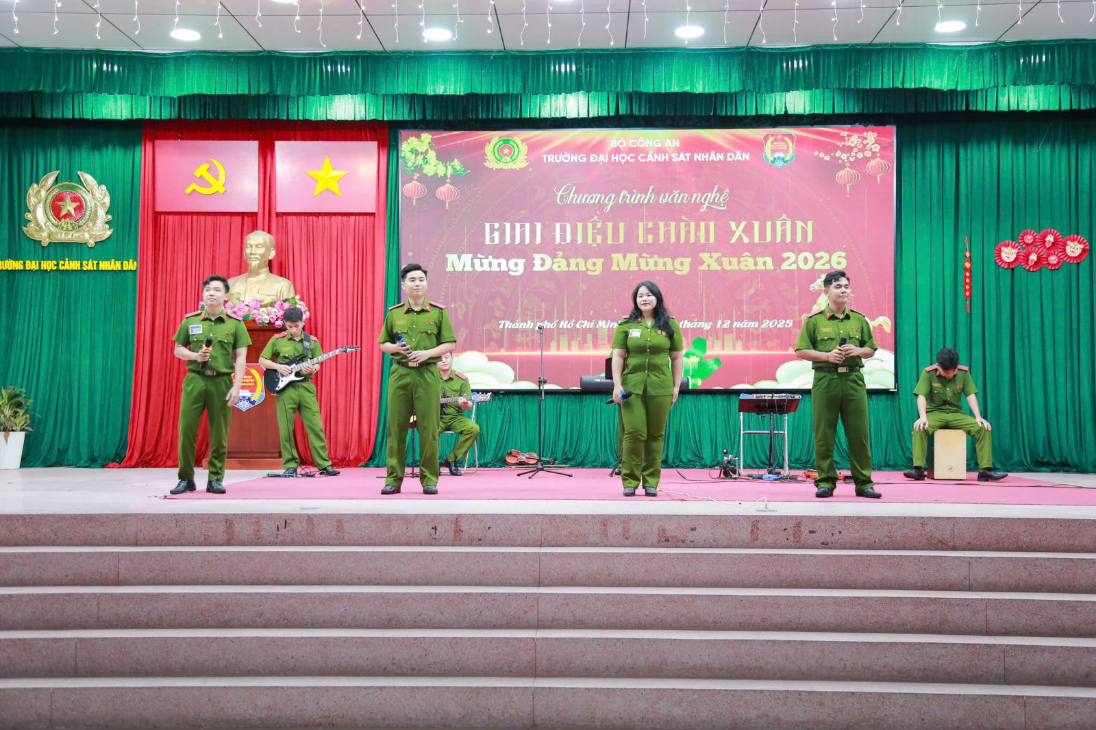 Trong không khí vui tươi, phấn khởi chào đón Xuân Bính Ngọ 2026, chương trình văn nghệ “Giai điệu chào Xuân” không chỉ mang đến làn gió xuân tươi mới, lan tỏa khí thế thi đua trong toàn khối học viên; mà còn là dịp để các đơn vị trong và ngoài lực lượng giao lưu, học hỏi, tăng cường mối quan hệ đoàn kết, gắn bó, tạo động lực hoàn thành tốt nhiệm vụ được giao.
