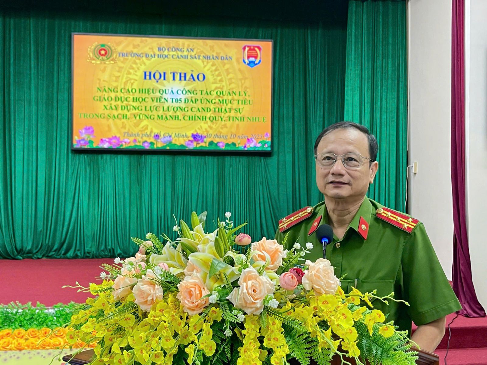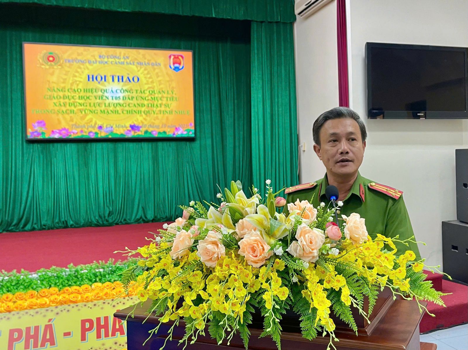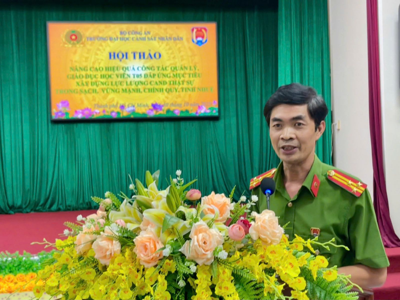 Phát biểu kết luận, đồng chí PGS TS, Đại tá Nguyễn Giang Nam - Phó Hiệu trưởng Nhà trường cảm ơn những ý kiến quý báu, những bài viết khoa học sâu sắc, đầy tâm huyết, trách nhiệm của các đại biểu. Đây là nền tảng quan trọng để các đơn vị Nhà trường tổng hợp, nghiên cứu, có giải pháp phù hợp nhằm nâng cao hiệu quả công tác giáo dục - đào tạo tại Trường nói chung, công tác quản lý, giáo dục học viên nói riêng. Đồng thời, Hội thảo cũng đã thể hiện mối quan hệ gắn kết chặt chẽ giữa Trường Đại học CSND với các trường CAND và Công an các đơn vị, địa phương trong hoạt động đào tạo nguồn nhân lực CAND chính quy, tinh nhuệ, hiện đại theo tinh thần Nghị quyết số 12 của Bộ Chính trị.