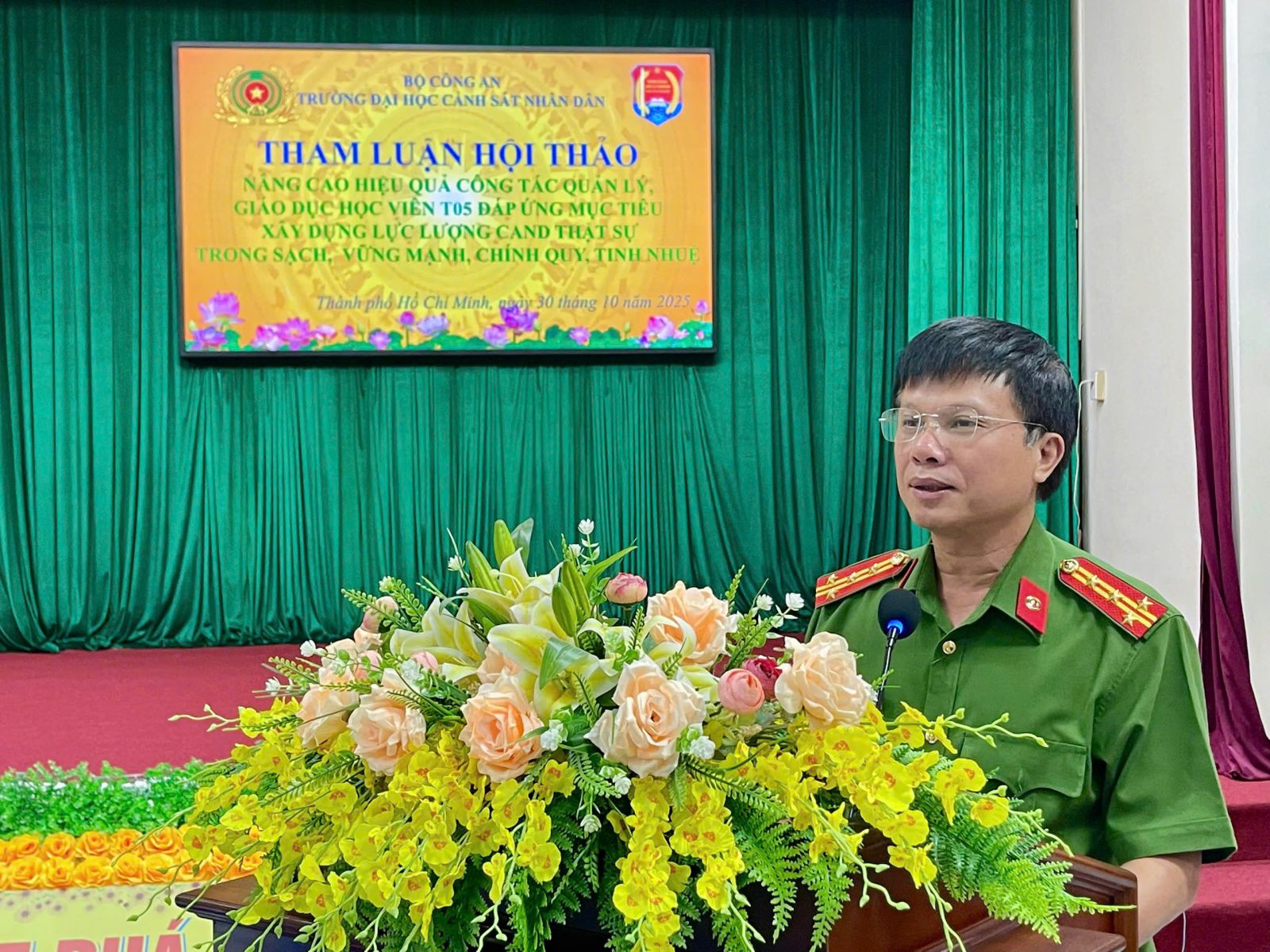 Ngày 30/10/2025, tại điểm đào tạo Phường Linh Xuân, Trường Đại học CSND đã tổ chức Hội thảo khoa học “Nâng cao hiệu quả công tác quản lý, giáo dục học viên Trường Đại học CSND đáp ứng mục tiêu xây dựng lực lượng Công an nhân dân (CAND) thật sự trong sạch, vững mạnh, chính quy, tinh nhuệ”. Đồng chí PGS TS, Đại tá Nguyễn Giang Nam - Phó Hiệu trưởng Nhà trường chủ trì Hội thảo.