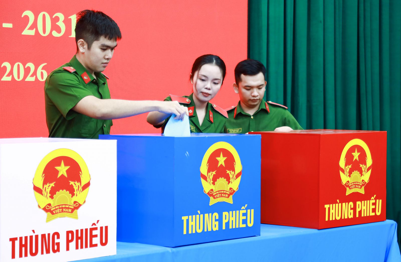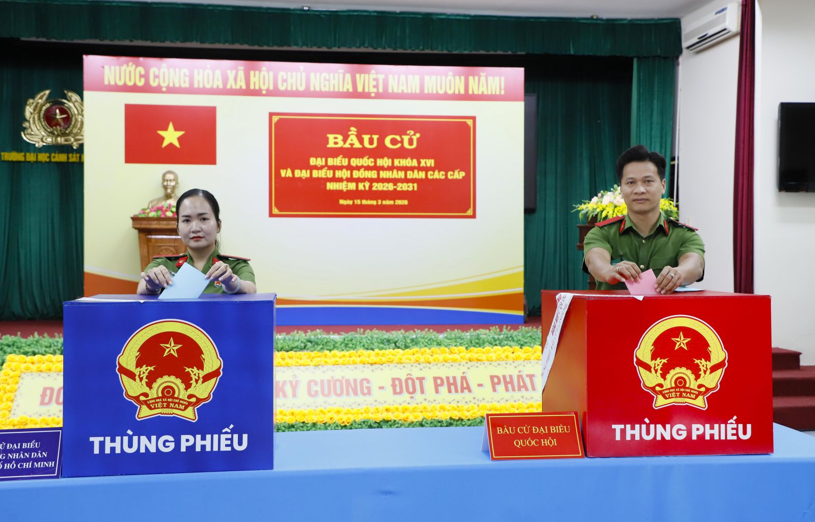 Sáng nay, hơn 6.000 cử tri là cán bộ, giảng viên, công nhân viên và học viên Trường Đại học CSND đã tham gia bầu cử tại Trụ sở chính, phường Tân Hưng, Thành phố Hồ Chí Minh (Tổ bầu cử số 43) và 02 điểm đào tạo của Nhà trường tại Phường Linh Xuân, Thành phố Hồ Chí Minh (Tổ bầu cử số 41); Phường Bình Thủy, Thành phố Cần thơ (Tổ bầu cử số 33).