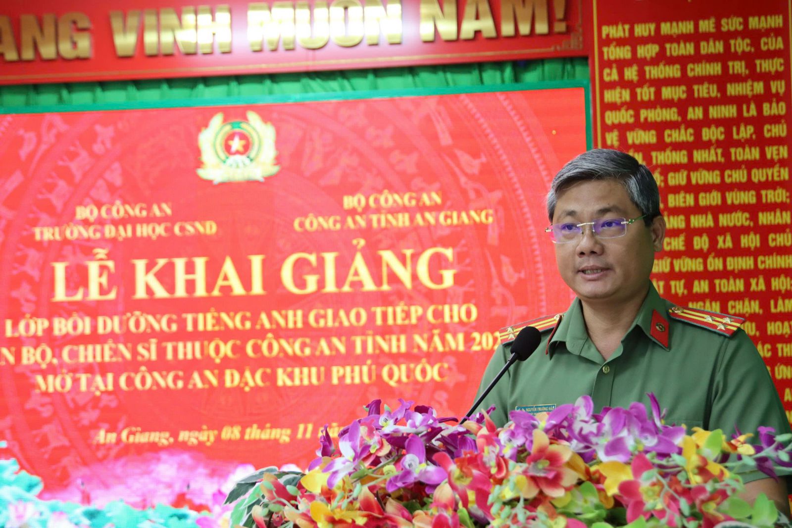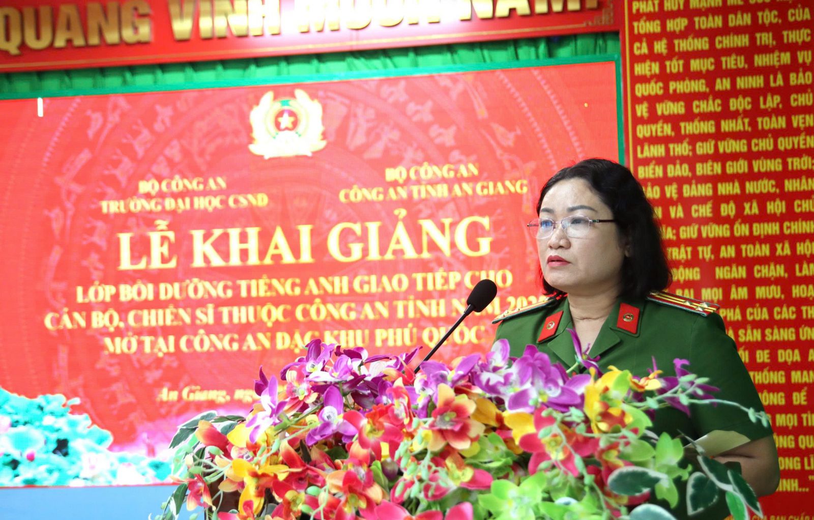 Phát biểu tại lễ khai giảng, đại diện lãnh đạo Trường Đại học CSND và Công an tỉnh An Giang đều nhấn mạnh vai trò, tầm quan trọng của việc nâng cao năng lực ngoại ngữ cho cán bộ chiến sỹ đáp ứng yêu cầu, nhiệm vụ trong tình hình mới. Qua đó, các đồng chí đề nghị toàn thể học viên tích cực, chủ động, tăng cường trao đổi với giảng viên để nâng cao vốn từ vựng, kỹ năng giao tiếp, hoàn thành tốt nhiệm vụ học tập và vận dụng linh hoạt, hiệu quả vào thực tiễn công tác.