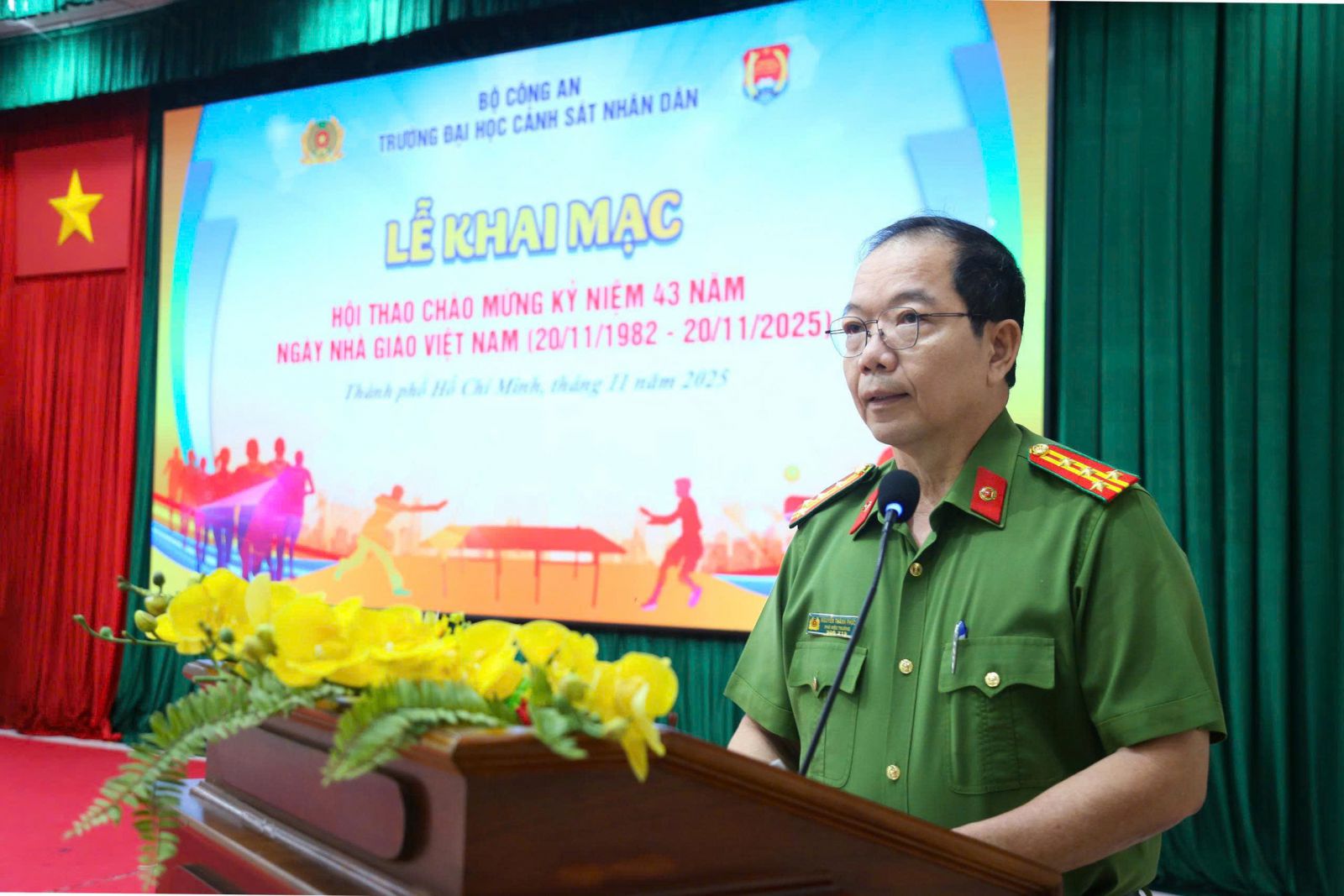 Sáng ngày 10/11/2025, Trường Đại học CSND đã tổ chức Lễ khai mạc Hội thao chào mừng kỷ niệm 43 năm Ngày Nhà giáo Việt Nam (20/11/1982 – 20/11/2025). Đồng chí PGS TS, Đại tá Nguyễn Thành Phúc - Phó Bí thư Đảng ủy, Phó Hiệu trưởng Nhà trường chủ trì buổi lễ.