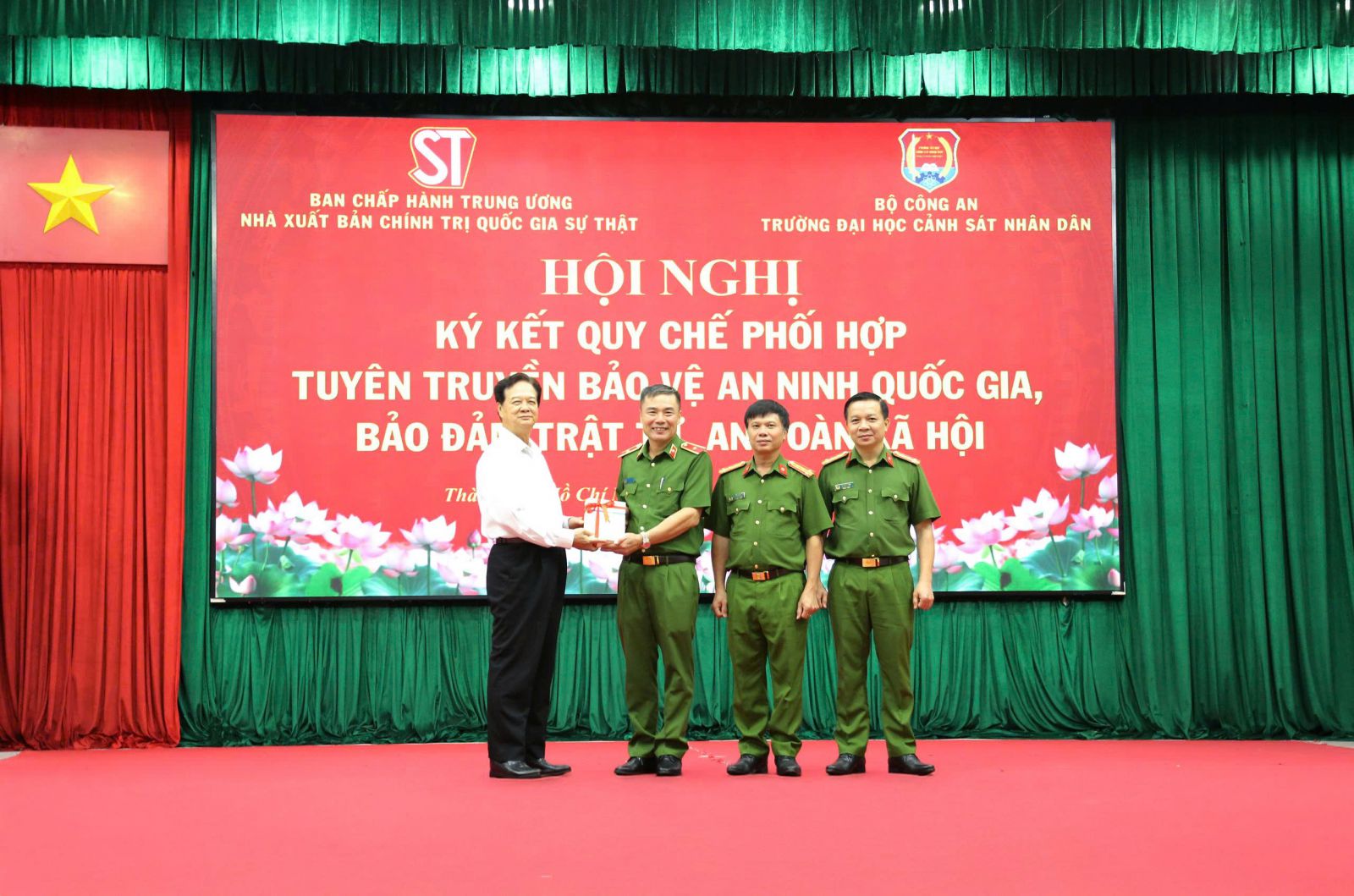 Nhân dịp này, đồng chí Nguyễn Tấn Dũng, đồng chí Đại tướng Lê Hồng Anh và đồng chí Thượng tướng Nguyễn Văn Thành đã trao tặng những ấn phẩm đặc sắc cho Trường Đại học CSND; đồng thời Nhà xuất bản Chính trị quốc gia Sự thật cũng đã trao tặng Tủ sách điện tử “Học và làm theo Bác” cho Nhà trường.
