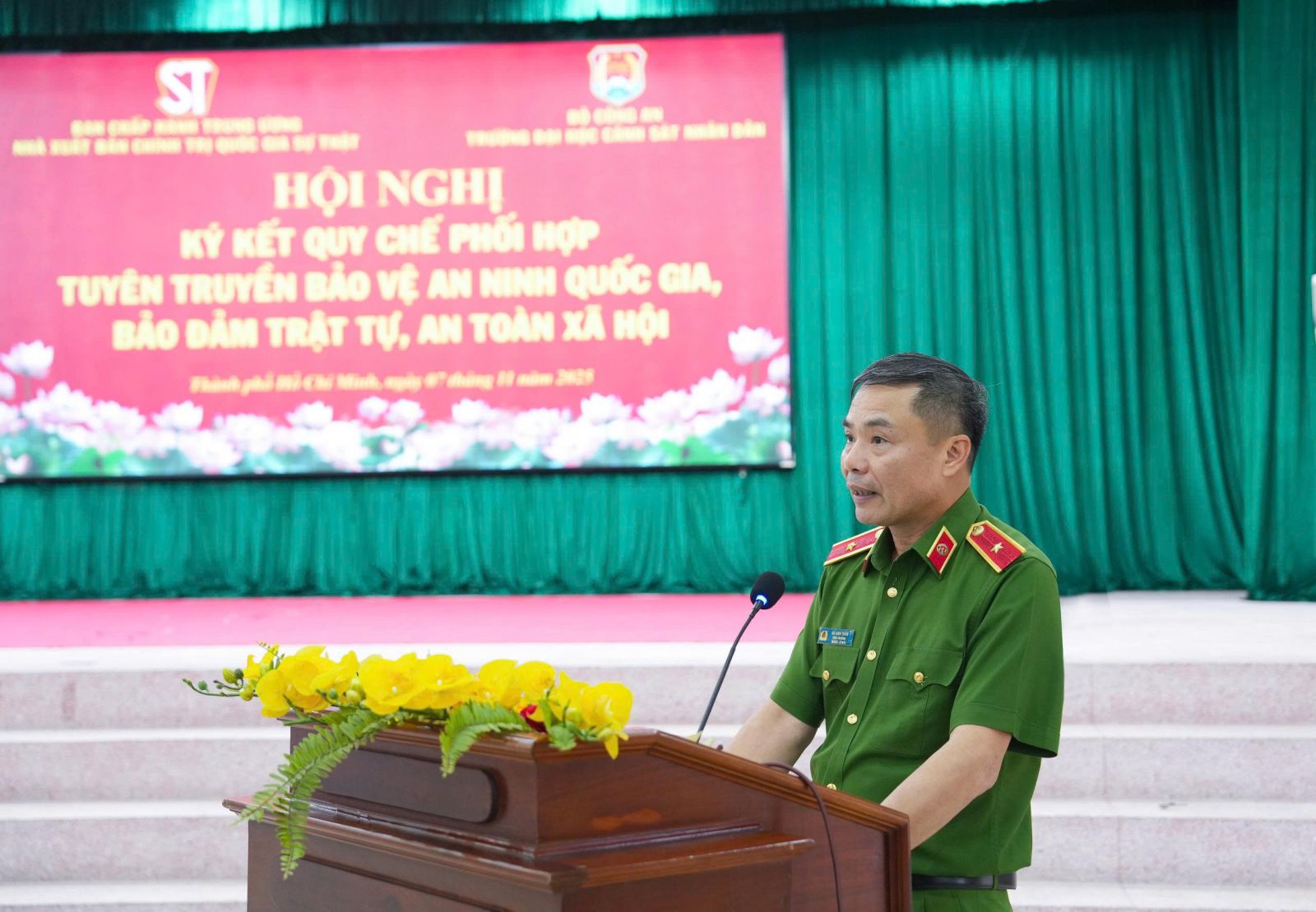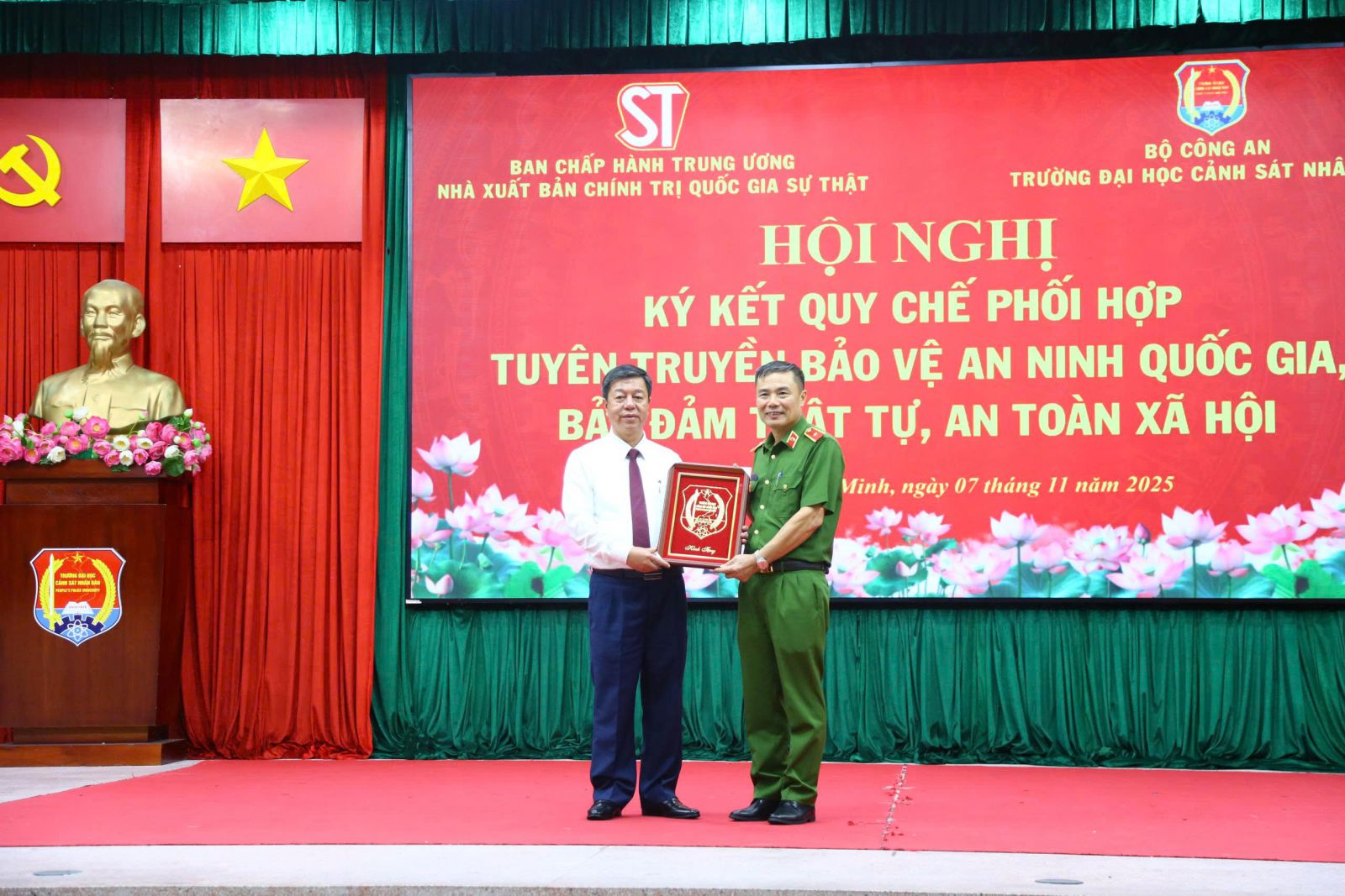 Chiều ngày 7/11/2025, tại Trụ sở chính Trường Đại học CSND đã diễn ra Hội nghị ký kết Quy chế phối hợp về tuyên truyền bảo vệ an ninh quốc gia, bảo đảm trật tự, an toàn xã hội giữa Nhà trường với Nhà xuất bản Chính trị quốc gia Sự thật.