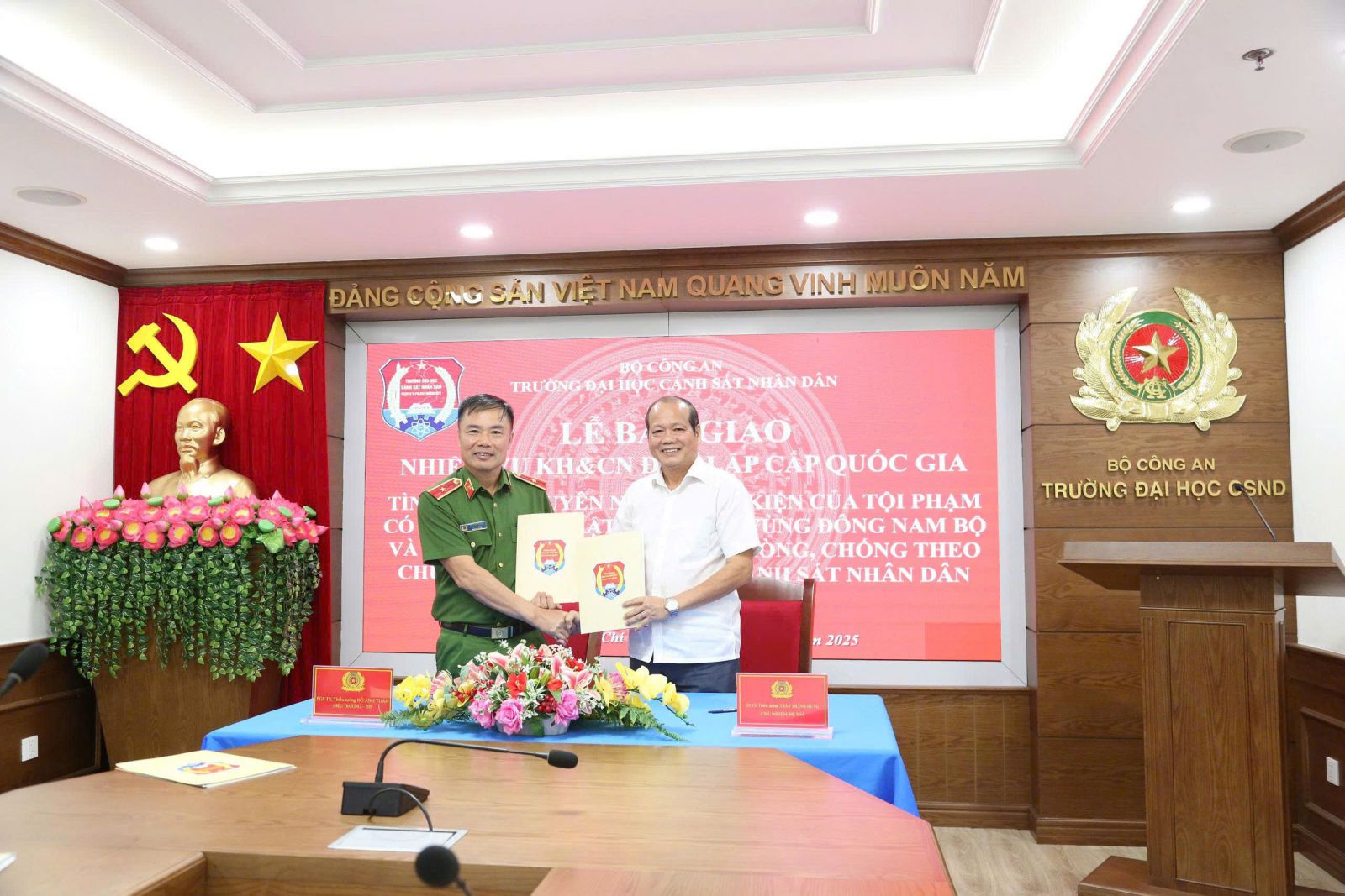Cũng tại buổi lễ, các cá nhân và đại diện cơ quan chủ trì nhiệm vụ đã ký biên bản bàn giao hồ sơ, tài liệu nhằm bảo đảm tính liên tục, thống nhất trong quá trình triển khai thực hiện nhiệm vụ KH&CN. Buổi lễ diễn ra thành công đã khẳng định quyết tâm chính trị, năng lực nghiên cứu khoa học của Trường Đại học CSND - Cơ sở đào tạo, nghiên cứu khoa học chất lượng cao của Bộ Công an.