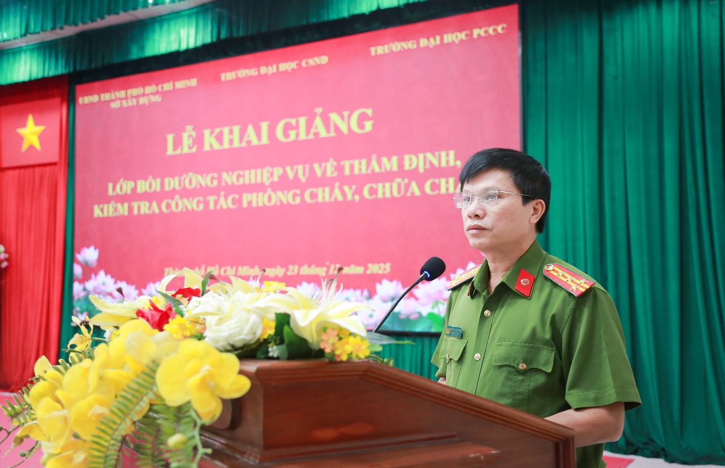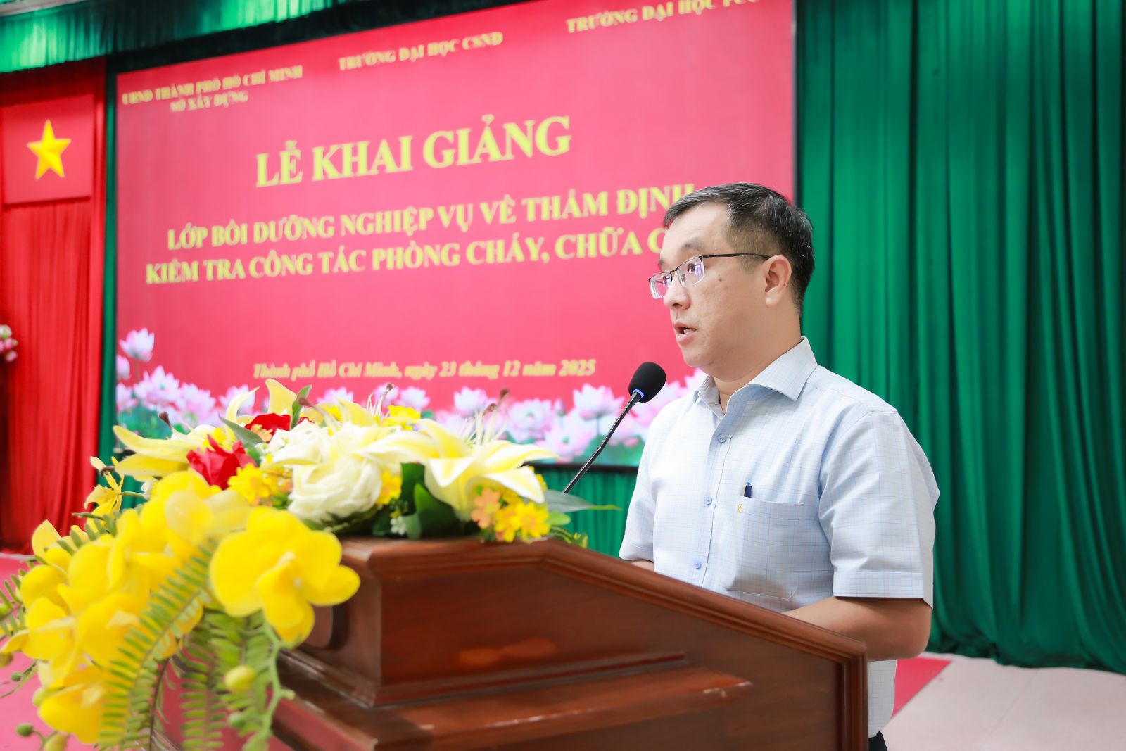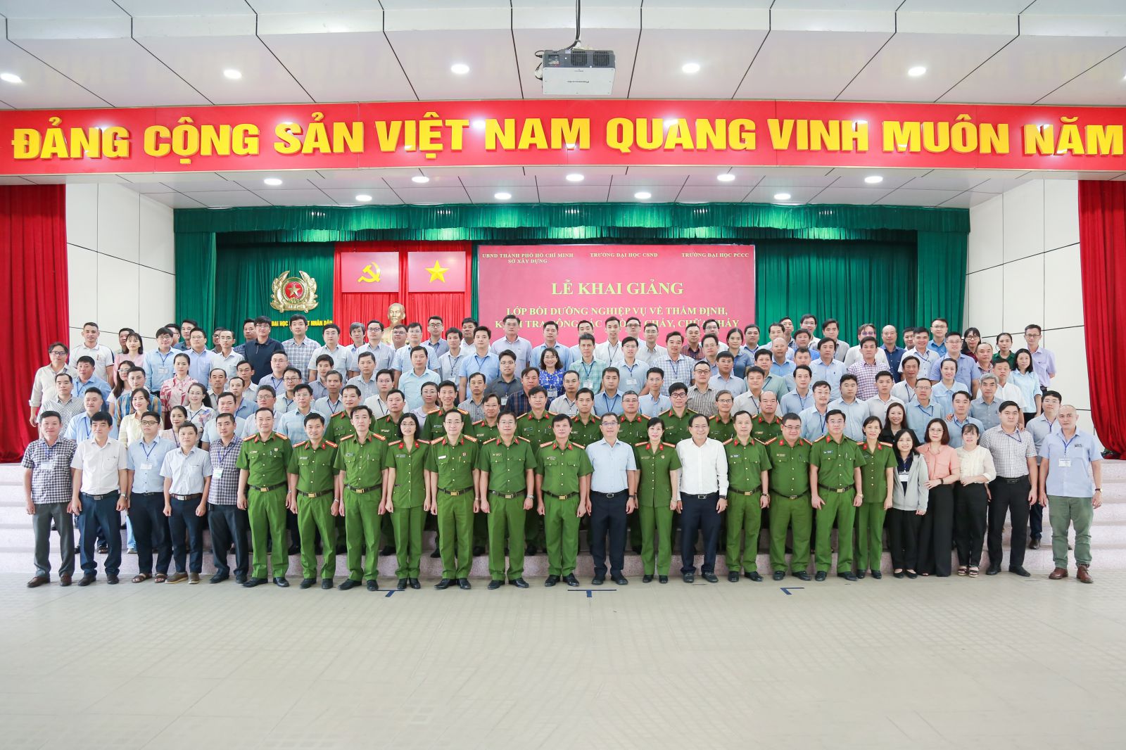 Từ ngày 23/12 đến 28/12/2025, Trường Đại học CSND đã phối hợp với Trường Đại học Phòng cháy, chữa cháy (PCCC) tổ chức lớp bồi dưỡng nâng cao nghiệp vụ đối với công tác thẩm định, thiết kế và kiểm tra công tác nghiệm thu PCCC theo quy định của pháp luật cho 148 cán bộ, công chức Sở Xây dựng Thành phố Hồ Chí Minh.