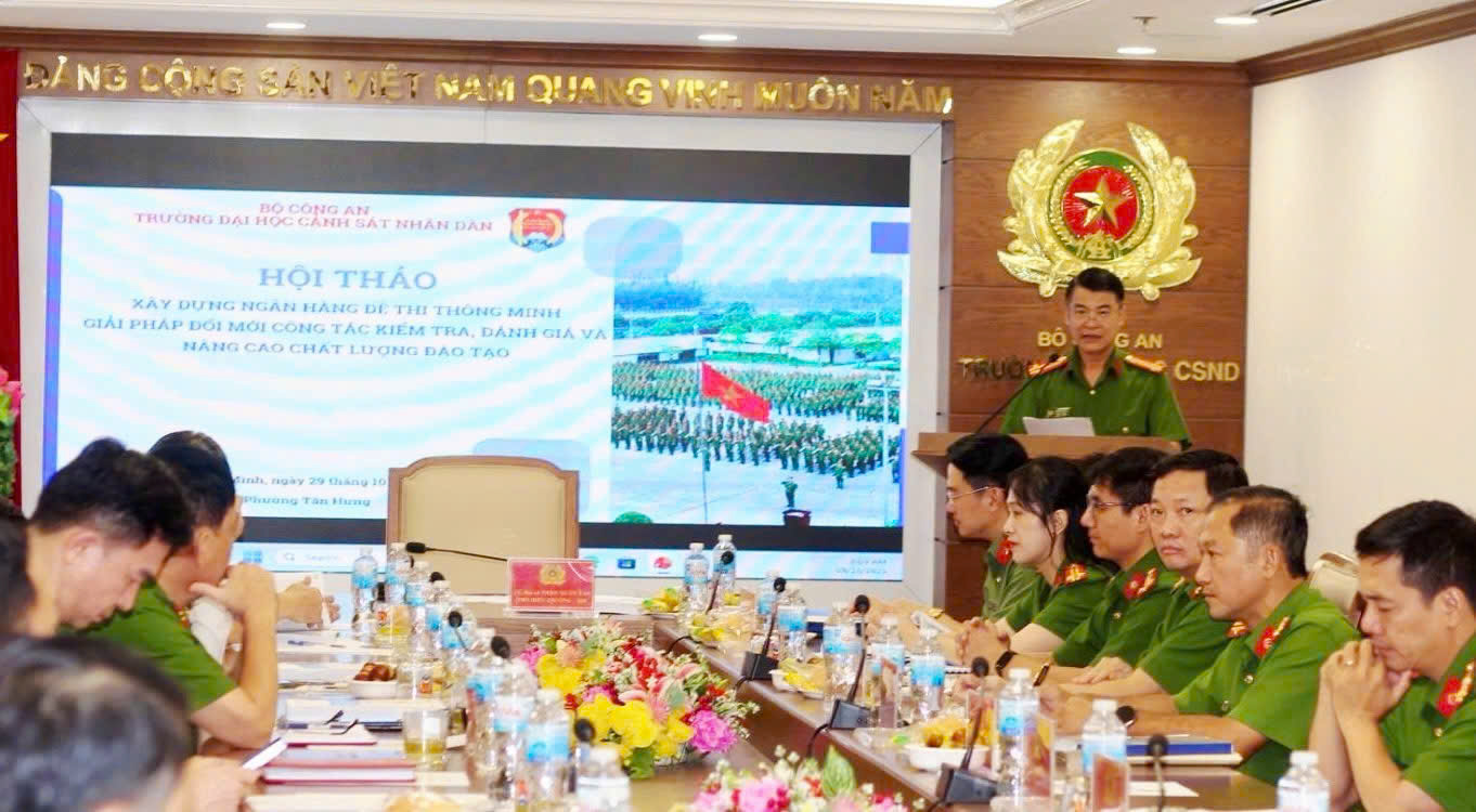 Ngoài ra, tại Hội thảo, đại biểu đã tập trung trao đổi, phân tích, luận giải sâu sắc các vấn đề liên quan đến cơ sở lý luận và chiến lược xây dựng, sử dụng ngân hàng câu hỏi, đề thi thông minh; yếu tố công nghệ và yêu cầu ứng dụng AI trong lĩnh vực này; yêu cầu đa dạng hóa hình thức kiểm tra, đánh giá, kết hợp tự luận và trắc nghiệm để đo lường kiến thức, năng lực của người học; các yêu cầu phát triển câu hỏi dạng bài tập, vấn đáp để đánh giá kỹ năng xử lý tình huống, vận dụng kiến thức, thuyết trình và thực hành thông minh đối với các học phần quân sự, võ thuật, thể dục thể thao... Từ đó, đề xuất giải pháp về quản trị, chính sách, hạ tầng, ứng dụng và sử dụng AI, công nghệ thông tin để xây dựng, sử dụng hiệu quả ngân hàng câu hỏi, đề thi thông minh tại các trường đại học nói chung, Trường Đại học CSND nói riêng thời gian tới.