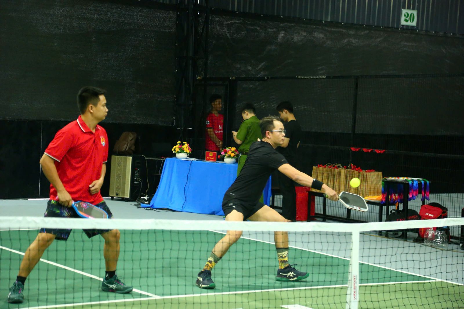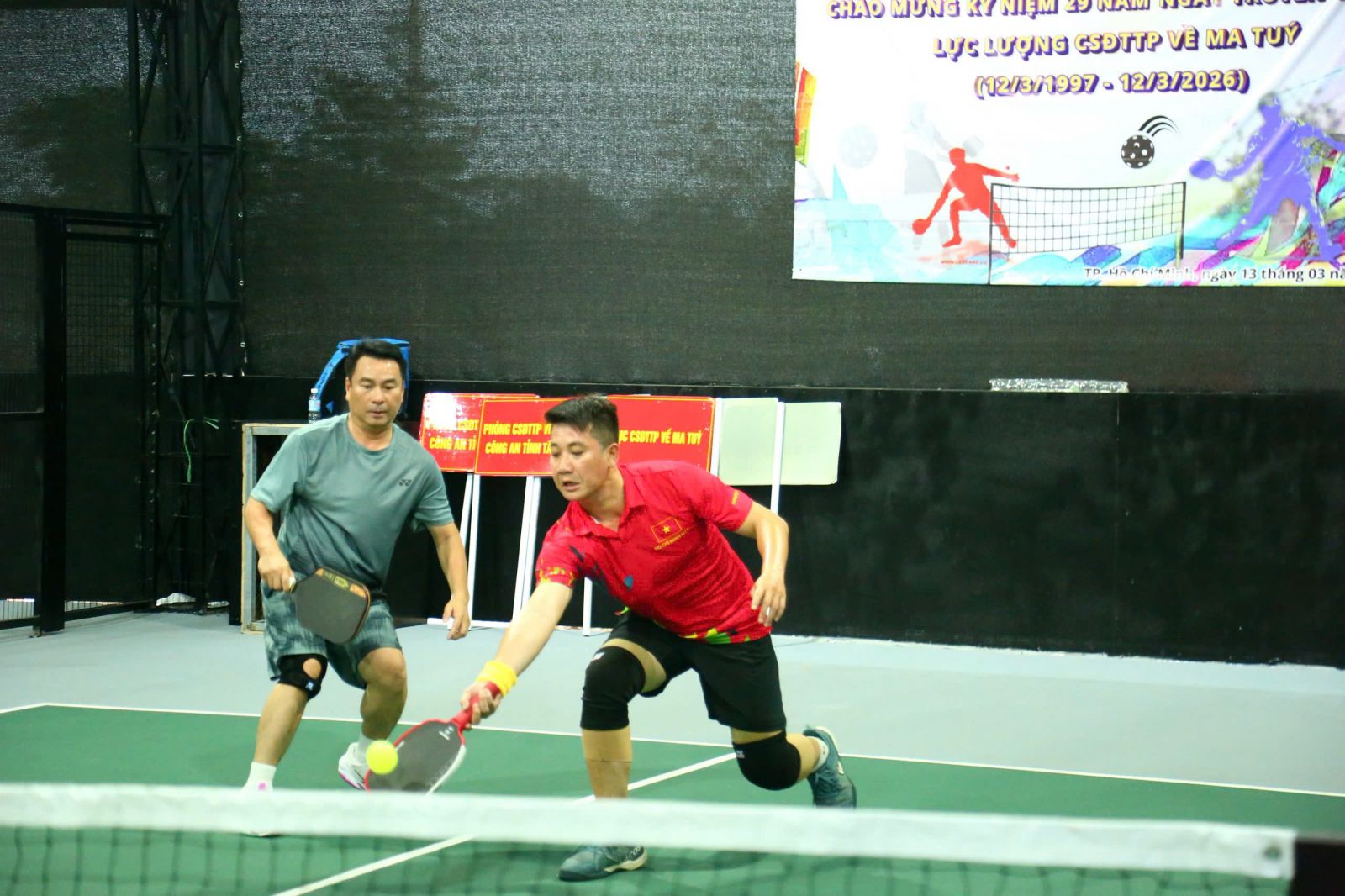 Ngay sau Tọa đàm, Giải Pickleball chào mừng Ngày truyền thống lực lượng CSĐTTPVMT đã diễn ra sôi nổi, khuấy động bầu không khí với những màn tranh tài gay cấn, hấp dẫn. Bên cạnh bảng đấu dành cho hệ lực lượng CSĐTTPVMT, Giải còn có thêm bảng đấu dành cho khách mời là các diễn viên, KOLs nổi tiếng như diễn viên Thành Đạt, NSƯT Trọng Hải, ca sĩ TiTi…, Công ty CP Đầu tư và Thương mại ETDA (Thương hiệu thể thao Zocker), chủ đầu tư sân thi đấu CLB PSC Sports Club cùng các đơn vị tài trợ.