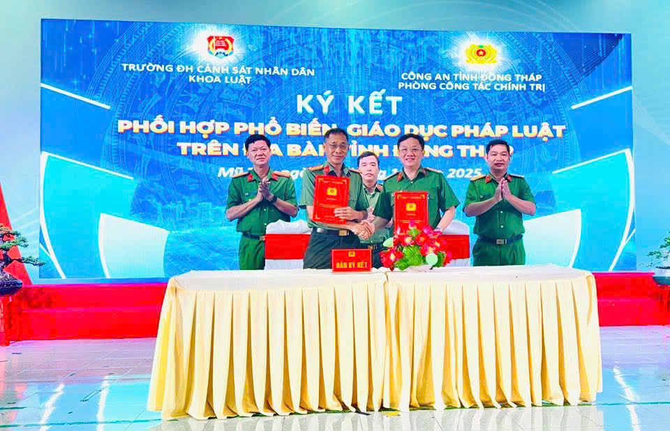 Mở đầu chuỗi hoạt động, Khoa Luật - Trường Đại học CSND và Phòng Công tác chính trị - Công an tỉnh Đồng Tháp đã tổ chức Lễ ký kết bản ghi nhớ phối hợp trong thực hiện công tác phổ biến, giáo dục pháp luật trên địa bàn tỉnh. Theo đó, thời gian tới, Khoa Luật sẽ chủ động phối hợp tuyên truyền, phổ biến, giáo dục pháp luật phù hợp với tình hình thực tế ở địa phương; phối hợp tổ chức các lớp tập huấn, tọa đàm, hội thảo, nghiên cứu khoa học… nhằm nâng cao trình độ cho cán bộ, chiến sĩ; trang bị các đầu sách mới cho Tủ sách pháp luật của Công an cấp xã.