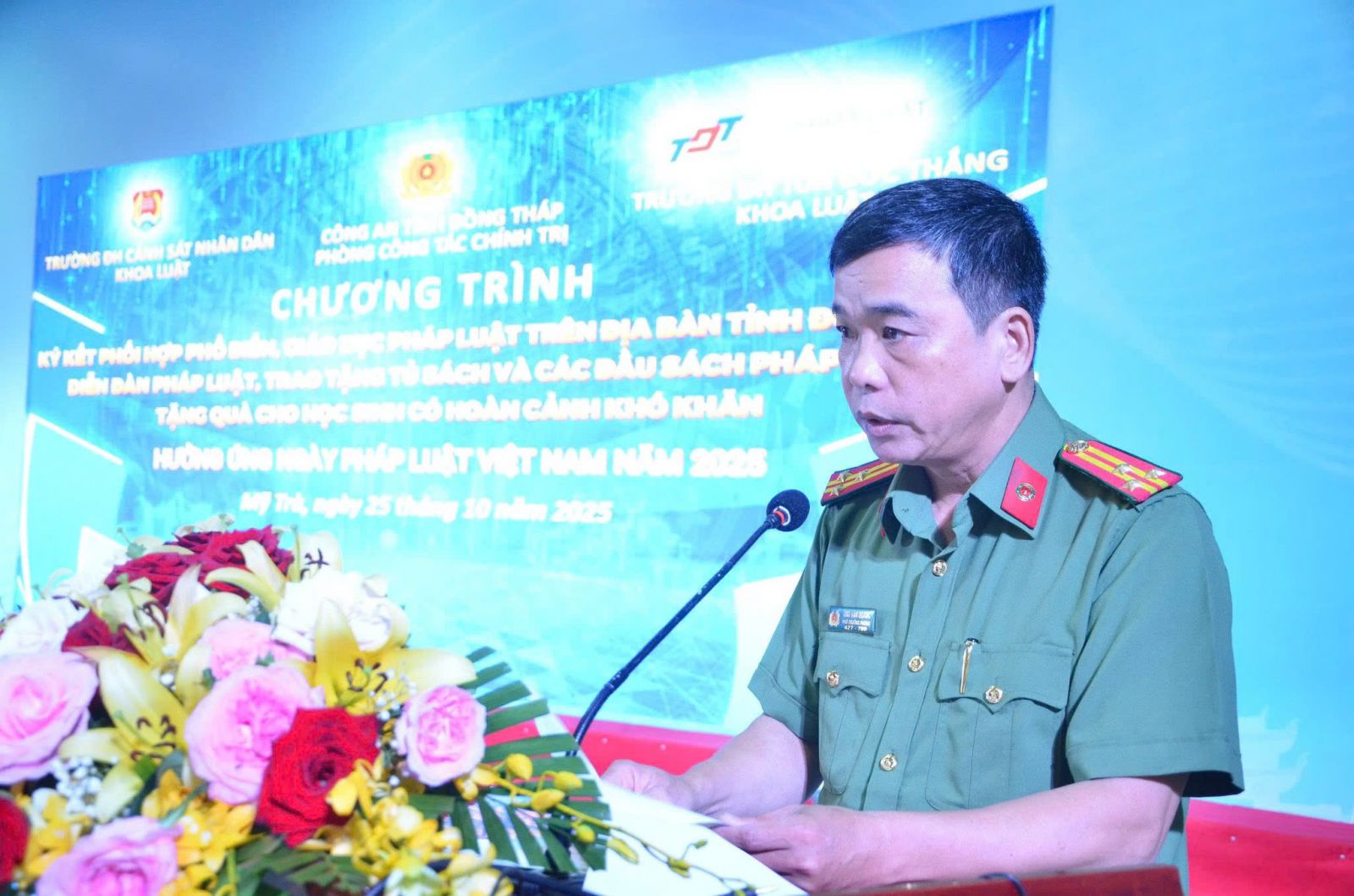 Hưởng ứng Ngày Pháp luật nước Cộng hòa xã hội chủ nghĩa Việt Nam (09/11), Khoa Luật - Trường Đại học CSND đã tổ chức chuỗi hoạt động ý nghĩa tại tỉnh Đồng Tháp.