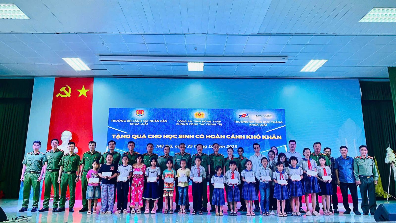 Ngay sau Lễ ký kết, Khoa Luật - Trường Đại học CSND đã trao tặng 50 phần quà cho các em học sinh có hoàn cảnh khó khăn trên địa bàn phường Mỹ Trà; trao tặng 01 tủ sách, 200 đầu sách pháp luật cho Công an phường và tổ chức diễn đàn pháp luật với sự tham gia của 200 em học sinh và phụ huynh. Được biết, tổng kinh phí của hoạt động thiện nguyện là 31 triệu đồng, do lãnh đạo, giảng viên của Khoa đóng góp.