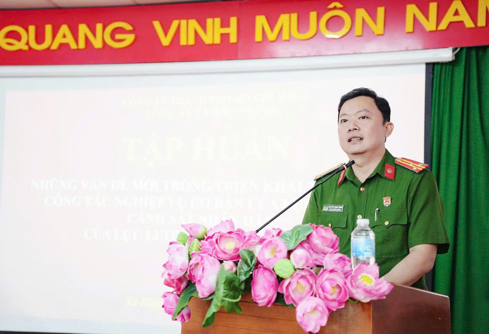 Đồng chí TS, Thượng tá Nguyễn Thanh Trung - Phó Trưởng khoa Nghiệp vụ cơ bản tập huấn tại Công an xã Hiệp Phước