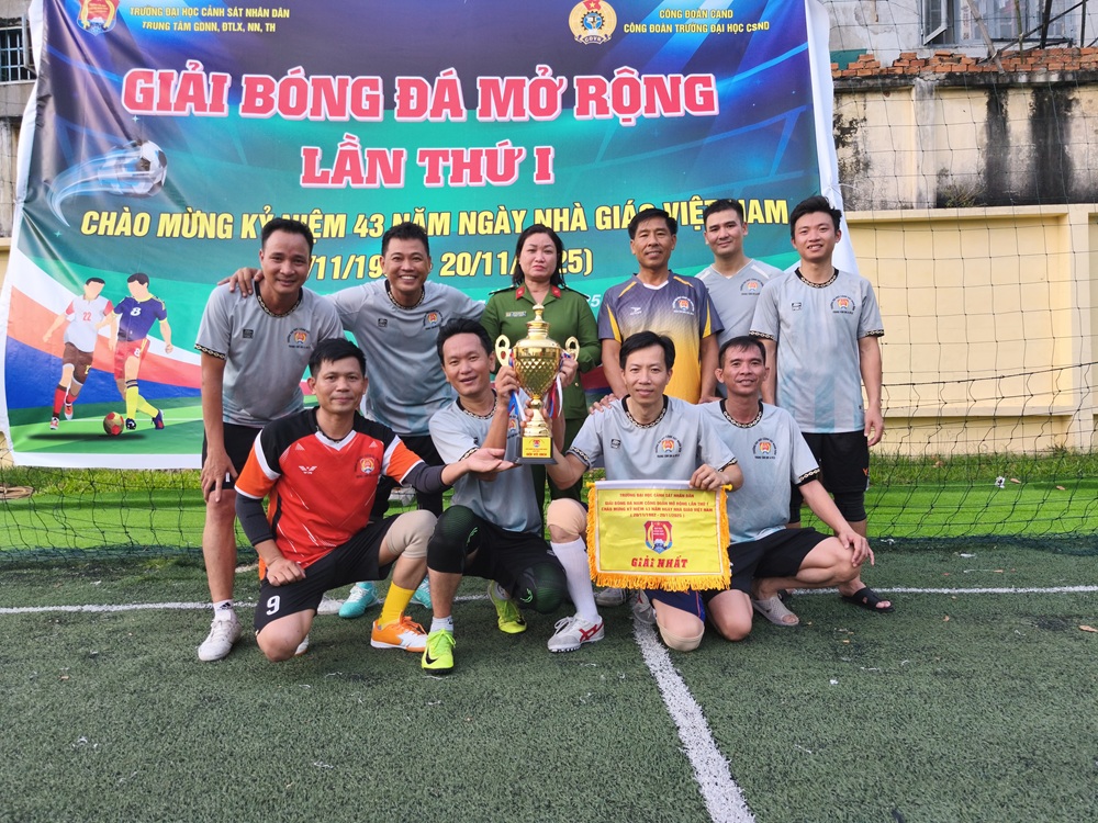 Hướng tới kỷ niệm 43 năm Ngày Nhà giáo Việt Nam 20/11, Trung tâm Giáo dục nghề nghiệp, Đào tạo lái xe, Ngoại ngữ, Tin học - Trường Đại học CSND đã phối hợp cùng Công đoàn Nhà trường tổ chức Giải bóng đá Công đoàn Trường mở rộng lần thứ I.