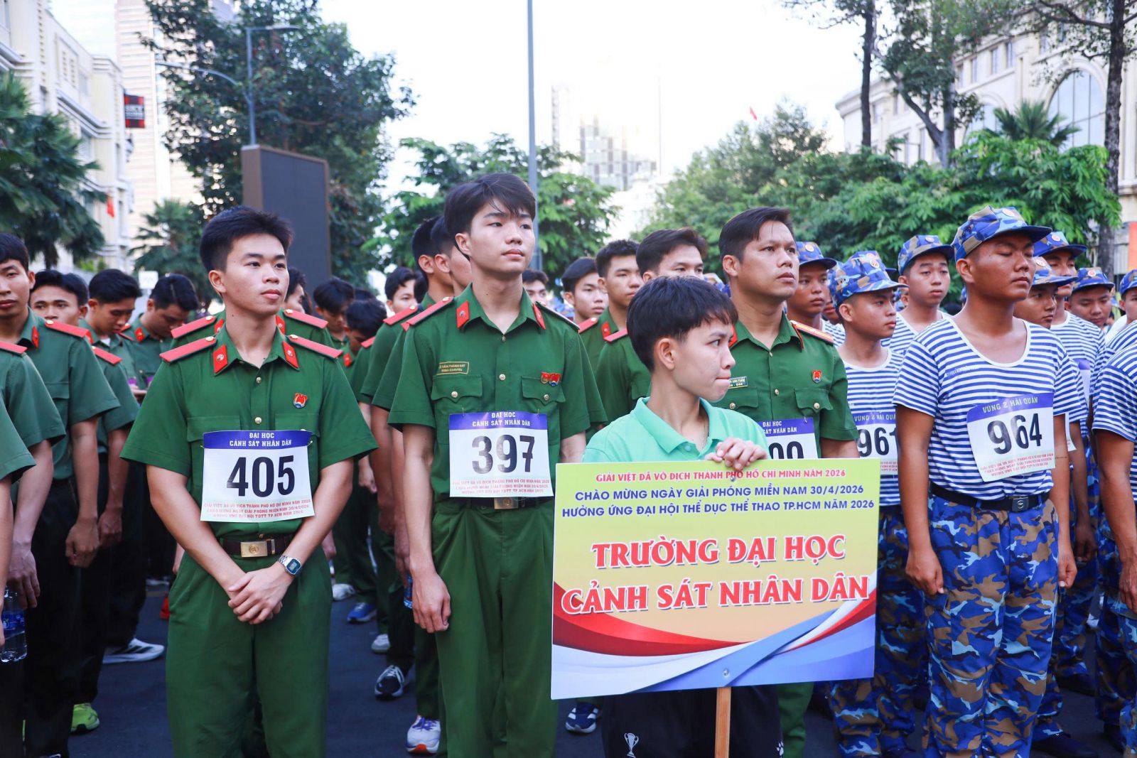 Giải đấu quy tụ gần 2.000 vận động viên, chia thành bốn nhóm gồm: Lực lượng dân quân, lực lượng thanh niên tại 168 phường, xã, đặc khu; lực lượng các câu lạc bộ phong trào trên địa bàn Thành phố và lực lượng vũ trang gồm: Bộ Tư lệnh Thành phố, Công an Thành phố, Bộ đội Biên phòng Thành phố, Bộ Tư lệnh vùng 2 Hải quân, Trường Đại học ANND và Trường Đại học CSND. Các vận động viên thi đấu trên các cung đường trung tâm Thành phố Hồ Chí Minh như Đồng Khởi, Nguyễn Huệ, Tôn Đức Thắng, Lê Duẩn, Công xã Paris… Trong đó, Đoàn vận động viên Trường Đại học CSND tham gia ở cả 02 nội dung cự ly 5km nam và 3km nữ.