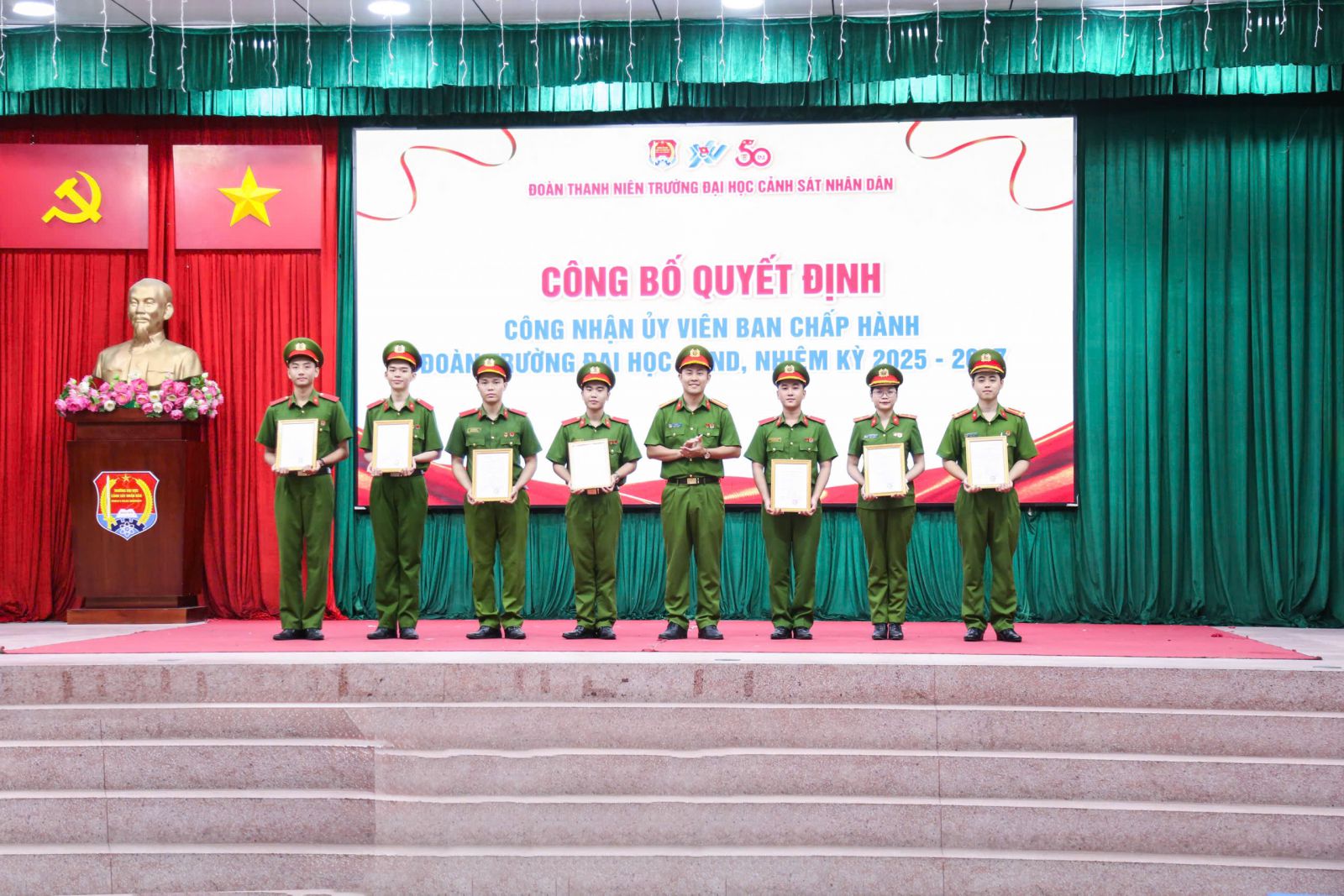 Cũng trong chương trình, Ban Chấp hành Đoàn trường đã công bố và trao Quyết định công nhận Ủy viên Ban Chấp hành Đoàn cơ sở Trường Đại học CSND nhiệm kỳ 2025 - 2027