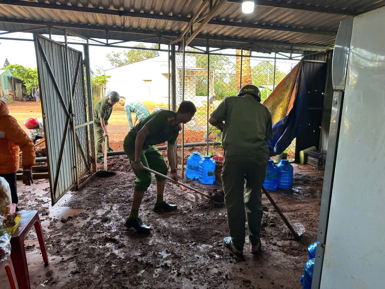 Đại úy Thân Văn Đào cùng các lực lượng hỗ trợ, giúp đỡ nhân dân