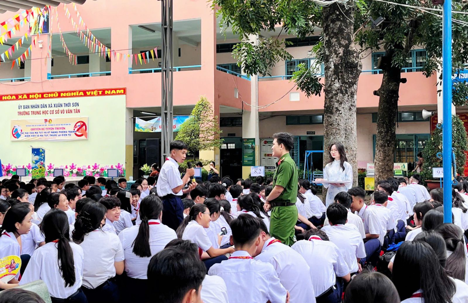 Ngày 13/10/2025, Khoa Cảnh sát điều tra tội phạm về ma túy (CSĐTTPVMT), Trường Đại học CSND đã tổ chức tuyên truyền về tác hại của ma tuý và kỹ năng phòng tránh hiểm hoạ ma tuý, thuốc lá điện tử cho hơn 300 em học sinh Trường THCS Võ Văn Tần, xã Xuân Thới Sơn, TP. Hồ Chí Minh.